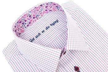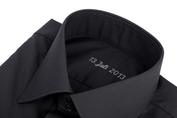 Des Weiteren bietet Fine Cotton Company auch eine größere Stickerei an, die in der Schulterinnenseite des Hemdes eingestickt wird. Die Favoriten unserer Kunden sind zum Beispiel der Vor- und Nachname, sowie bei Hochzeitshemden die Namen und das Datum des zukünftigen Ehepaares. Einige Kunden bevorzugen aber auch einen lockeren Spruch oder ihr Lebensmotto. Wenn das Hemd verschenkt werden soll, eignet sich dieses Feature zu einem netten Gruß. Auch hier gilt: wer die Stickerei dezent bevorzugt, wählt die Garnfarbe passend zum Hemdstoff, also Ton in Ton. Durch die Stickerei wird ihr Hemd einzigartig und Sie können sicher sein: So ein Maßhemd hat keiner außer Ihnen.